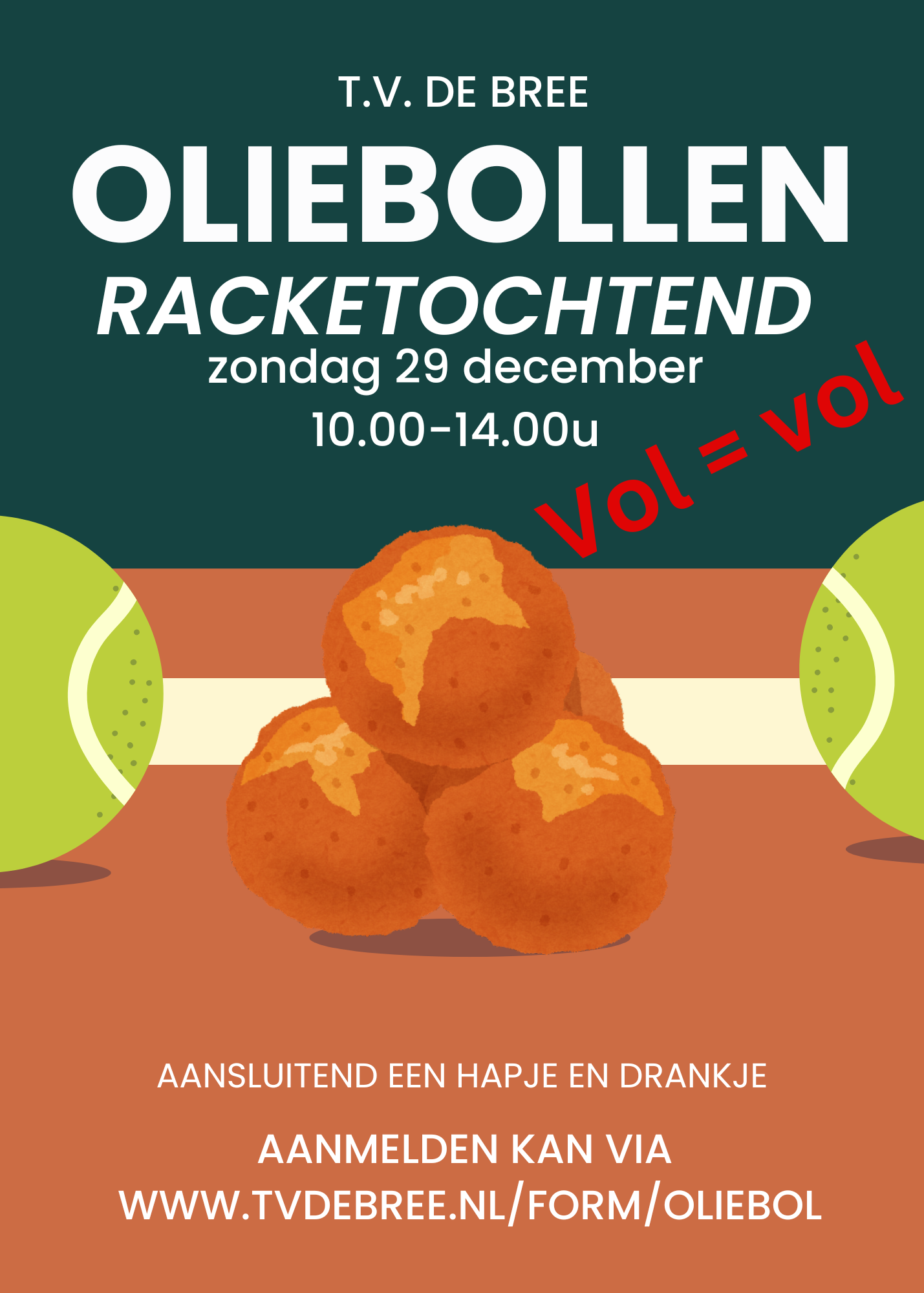 Aanmeldformulier voor de oliebollen racketochtend op 28 december 2025. Starten om 10.00u, tennissen tot 14.00u, vervolgens aansluitend een buffet.